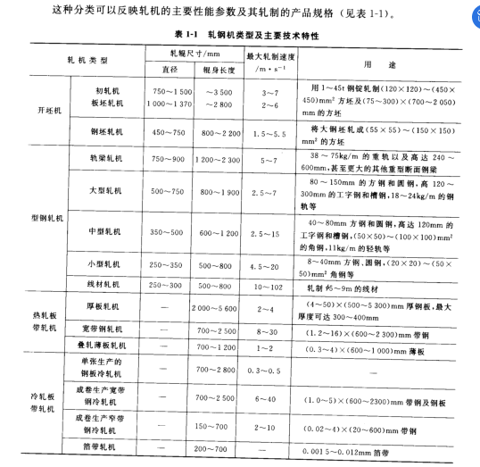 這種分類(lèi)可以反映軋機(jī)的主要性能參數(shù)及其軋制的產(chǎn)品規(guī)格(見(jiàn)表1-2)
