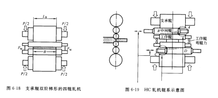 為了消除 A 區(qū)的有害作用,較簡(jiǎn)單的方法是將支承輥制成雙階梯形,使工作輾與支承輥在 A 區(qū)脫離接觸,如圖 6-18 所示。但軋制不同寬度的板帶時(shí),需要頻繁換輥來改變輥間接觸寬度 LB,或者把支承輥?zhàn)龀煽奢S向移動(dòng)的,但支承輥較大,移動(dòng)裝置也需要大型設(shè)備,在一般條件下不易實(shí)現(xiàn)。為此發(fā)明了中間輥可