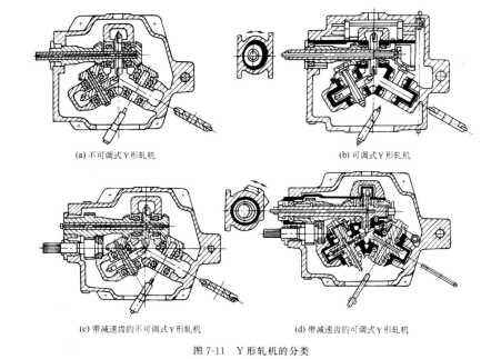 通常情況下,Y形軋機可分為不可調(diào)式的三輥 Y形軋機 【見圖7-11(a)】 和可調(diào)式的三輥 Y形軋機 「見圖7-11(b)】 兩種類型。對于不可調(diào)式的 Y形軋機又分為兩種結(jié)構(gòu)型式∶一種是軋機本身帶有一對直齒減速的結(jié)構(gòu)型式【見圖 7-11(c)】,另一種是軋機本身不帶減速的結(jié)構(gòu)型式【見圖 7-11(a)】。同樣地,對于可調(diào)式Y(jié)形軋機也分為兩種結(jié)構(gòu)型式∶一種為軋機本身帶有一對直齒減速的結(jié)構(gòu)型式【見圖 7-11(d)】,另一種為軋機本身不帶減速的結(jié)構(gòu)型式【見圖 7-11(b)】。軋機是否需要帶減速裝置是與傳動齒輪箱中的齒輪組速比分配有關(guān)的。